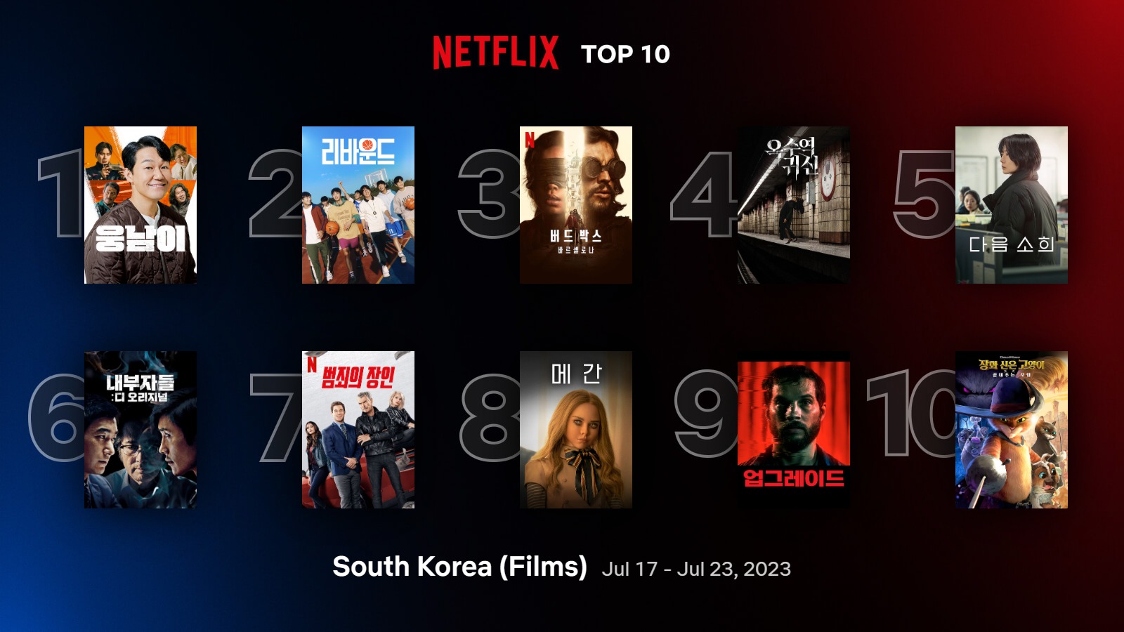 어떤 영화가 순위에 올라왔는지 1위부터 10위까지 알아보도록 하겠습니다.